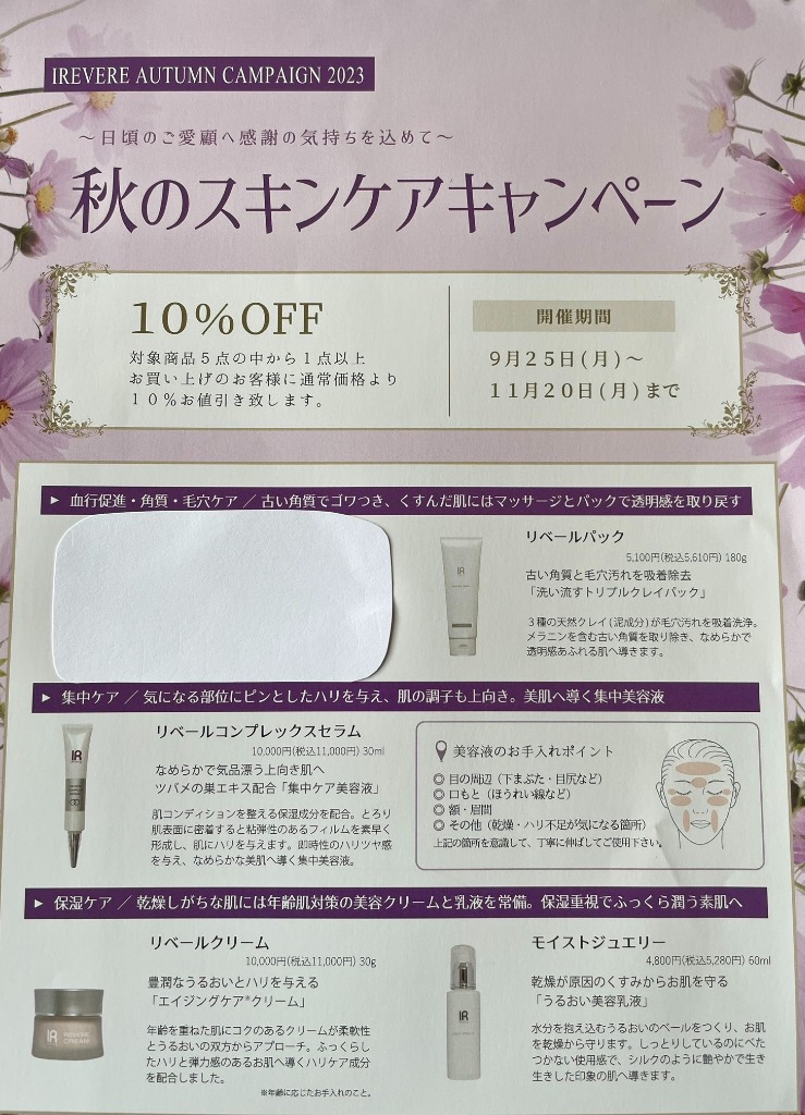 のクレンジングパック回数券を、先着7名様に限りミニフェイシャルのおまけ付で、